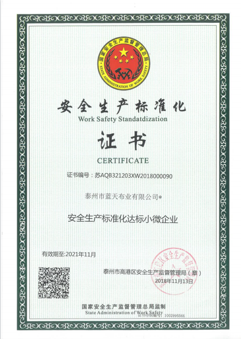 • 安全生產標準化證書